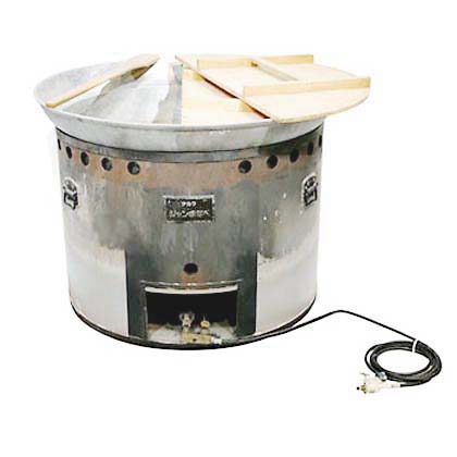 ★ 500人分(1杯350cc計算)180L 平鍋:Ф1200×H340(重量35kg) かまど:Ф1070×H840(重量35kg) 沸騰時間 約30~40分 味噌汁で約1時間 LPG20k使用(別途料金) ガス消費量(弱火1kg/h・強火4kg/h) ガスホース5m 木製ヘラ付き
