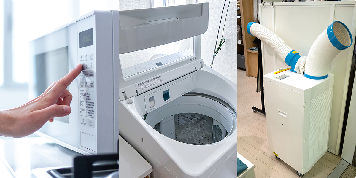 イベント運営や控室、模擬店など、あらゆる場面で役立つ電化製品を豊富にご用意。冷蔵庫・電子レンジ・電気ポット・延長コードなど、実用性の高いアイテムを短期間からレンタル可能です。安全性と清潔さを重視し、安心してご利用いただける品質を保っています。