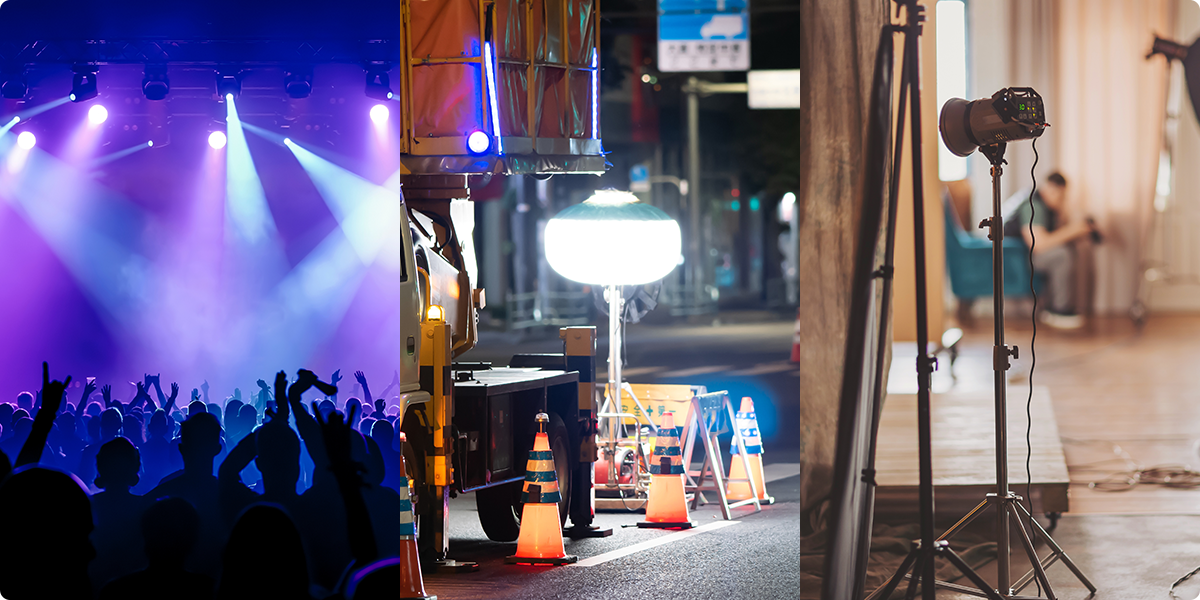 イベント会場や作業現場、撮影現場など、照明は安全性と雰囲気づくりに欠かせない重要な要素です。稲尾レントオールでは、LEDライト、スポットライト、投光器、ストロボなど、多彩な照明機器を取り揃えています。屋外・屋内問わず、長時間の使用や急な天候変化にも対応できる耐久性の高い商品をご提供。イベントの演出から作業現場の安全確保まで、用途に合わせて最適な機材を選べます。設置や操作に不安がある場合も、経験豊富なスタッフがサポートいたしますので、安心してご利用いただけます。